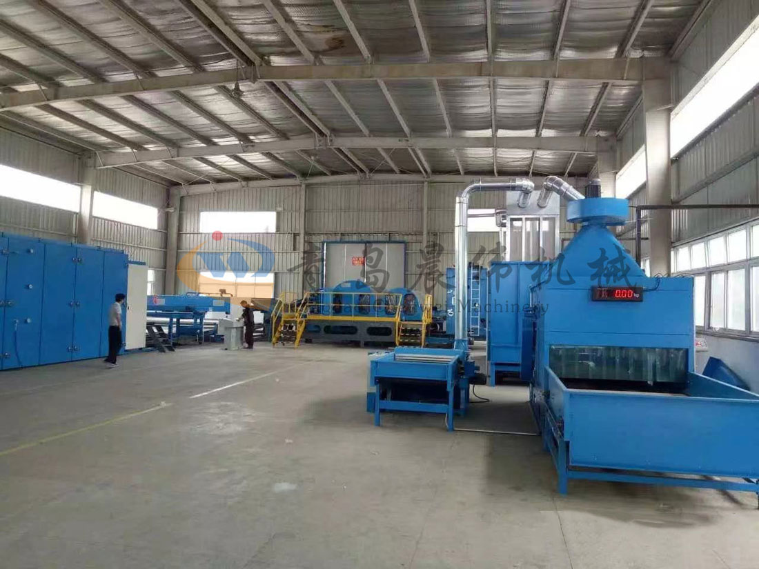 6. CWHF-烘房:本機是無膠棉、硬質棉產品后處理設備中的主要機型之一,用于對纖維烘干定型。加熱方式 : 天然氣、導熱油、電加熱。本機具有穿透性強,受熱均勻,產量高,耗能低等特征。該烘房由2只獨立式離心風機對角安裝,吹吸式均勻送風。燃燒室采用T型分布原理,可以充分散發熱量,提高熱能的轉換效率。傳動為鏈板夾持式進網,上層鏈板可上下升降;多區加熱,一區冷卻;每區單獨控溫,可以單獨開關;冷卻區有冷壓輥,保證成型壓力,控制產品厚度;