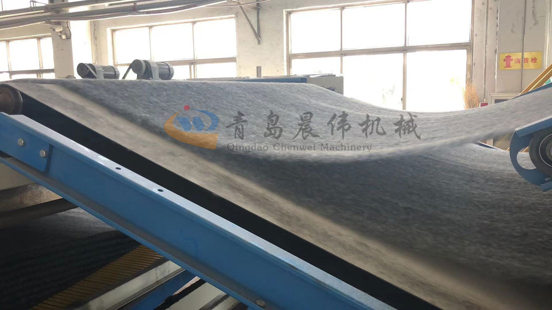 5. CWPW-鋪網機:用于將梳理纖網通過移動小車交叉折疊為所需幅寬和定量的多層纖網,以供后道工序使用。鋪網輥采用特殊結構,加裝壓網輥和導流板,不飄網不起皺,五只大功率電機精確控制各部件的運動,電動輸出簾高度調節裝置