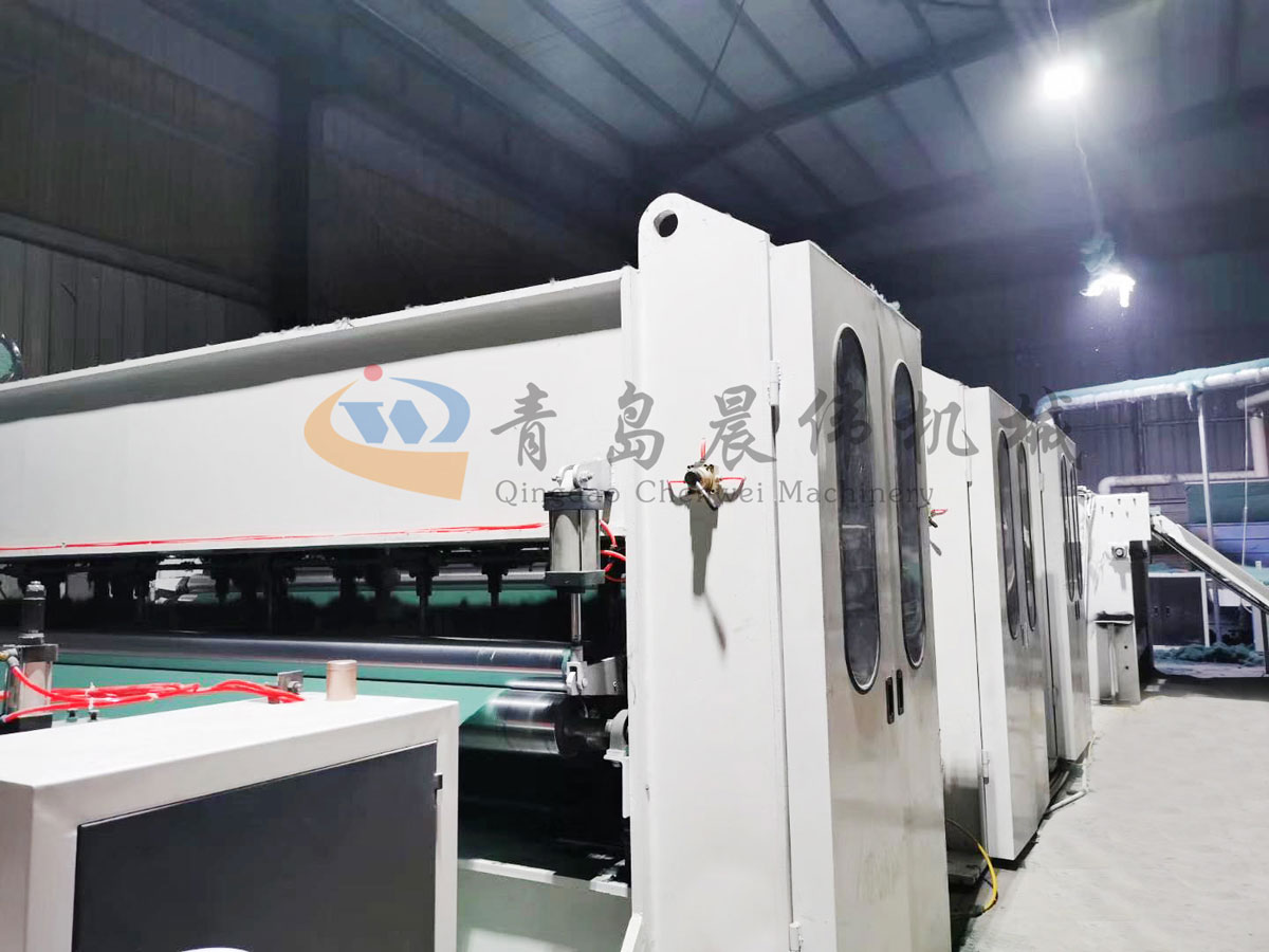 5. CWPW-鋪網(wǎng)機(jī):用于將梳理纖網(wǎng)通過移動(dòng)小車交叉折疊為所需幅寬和定量的多層纖網(wǎng),以供后道工序使用。鋪網(wǎng)輥采用特殊結(jié)構(gòu),加裝壓網(wǎng)輥和導(dǎo)流板,不飄網(wǎng)不起皺,五只大功率電機(jī)精確控制各部件的運(yùn)動(dòng),電動(dòng)輸出簾高度調(diào)節(jié)裝置